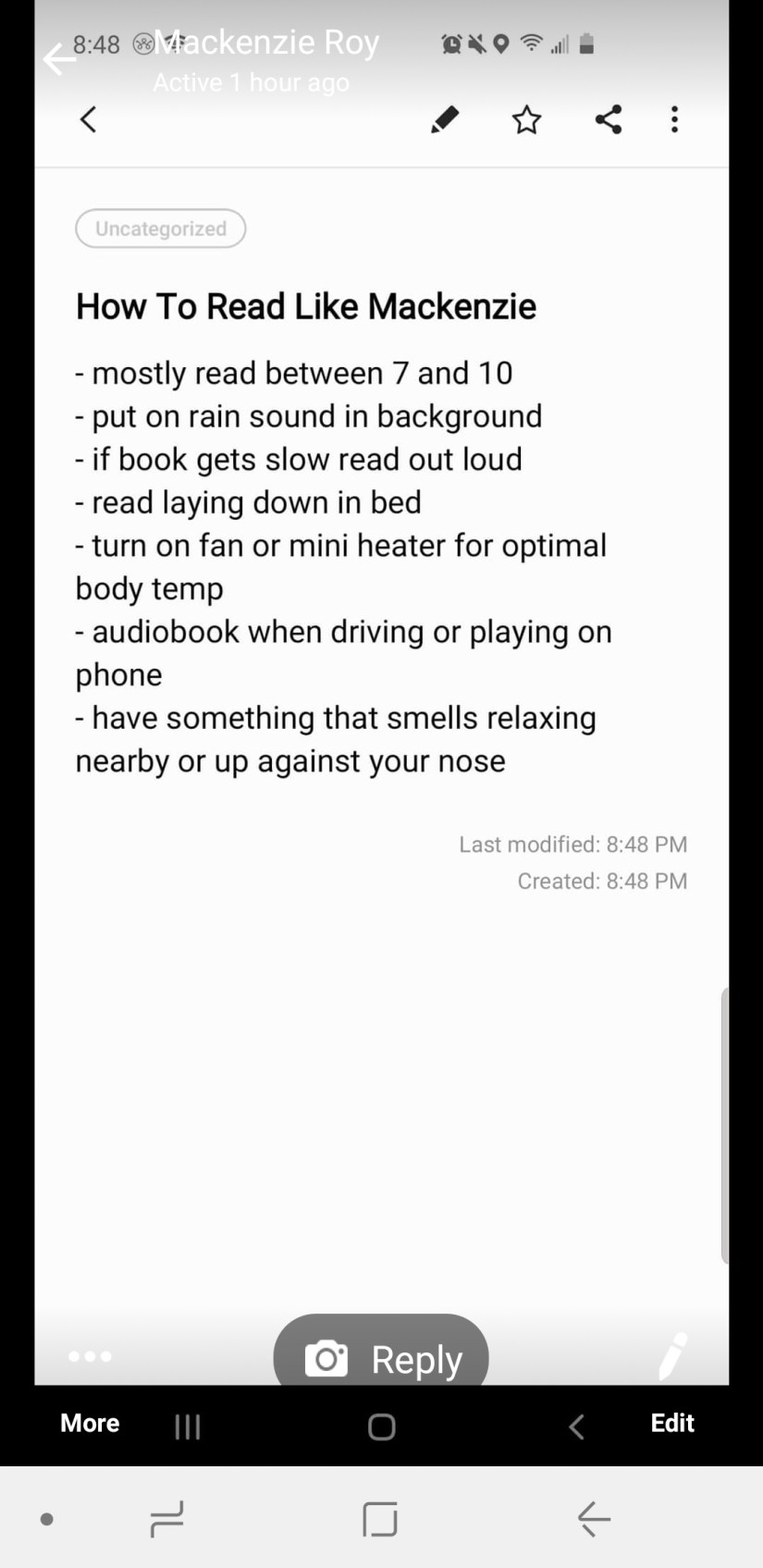 What about reading like Kenzie?
