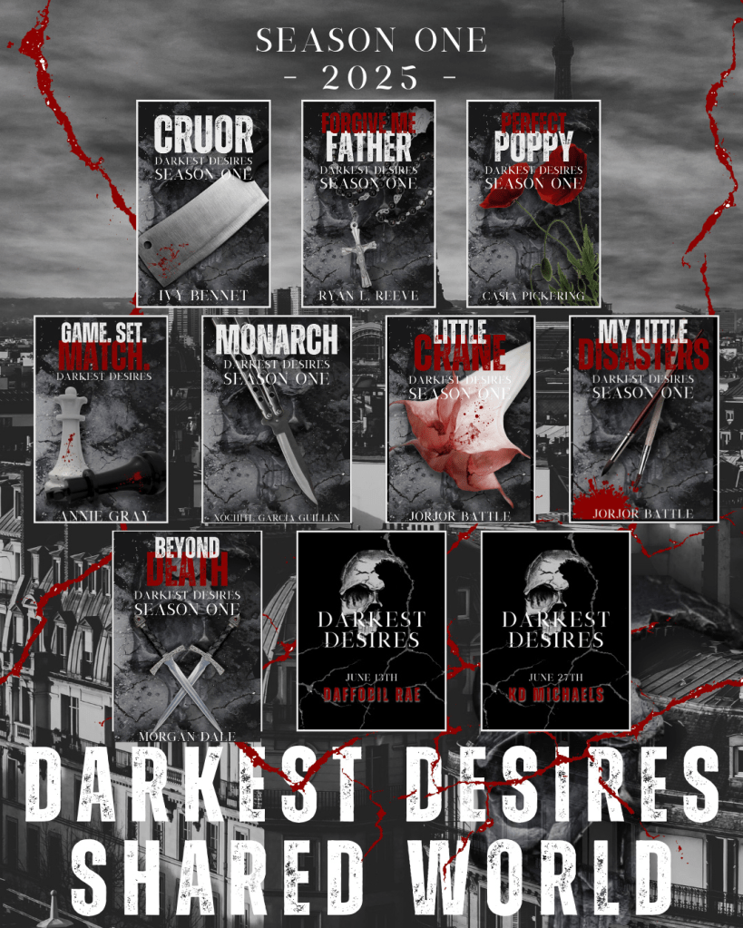 Ten authors come together to bring you tales of love and blood in this serial k!ller romance series. Unleash your Darkest Desires and join us January-June 2025.